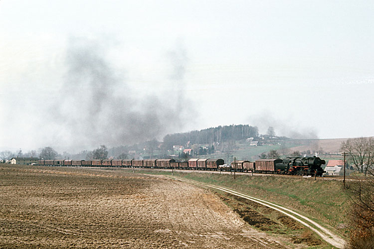Dem in Neusalza - Spremberg entgegenkommenden N 65274 Zittau - Bischofswerda widmete ich das letzte Bild dieser Tour, den an diesem Tag die Zittauer 52 8012 am Haken hatte. Danach ging es sofort auf die lange Heimreise in die Altmark. Auf der nächsten Seite gibt es dann die Bilder von meiner Abschiedstour in die Lausitz vom September 1987 zu sehen. |
