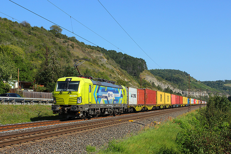 Bei Karlstadt erwischte ich LTE 193 299 mit einem Kesselzug in Richtung Würzburg. |