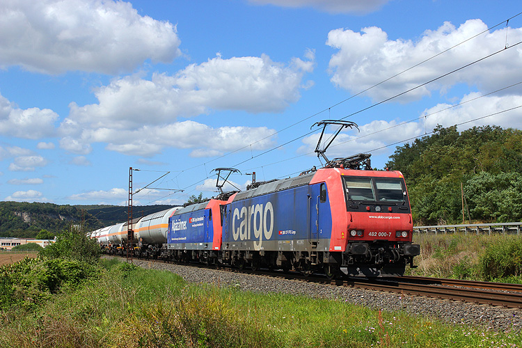Der SBB Cargo Gaskesselzug Offenbach - Münchsmünster kam mit Doppelspanne, 482 000 +022.  |