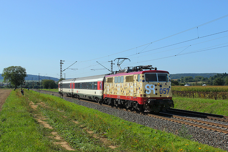Am Nachmittag bei Karlstadt machte RFO 159 257 mit Knickkesselzug in Richtung Gemünden den Anfang. |
