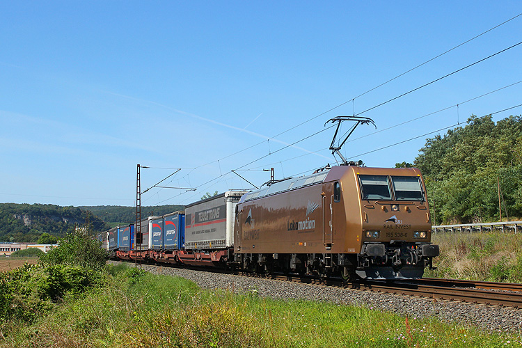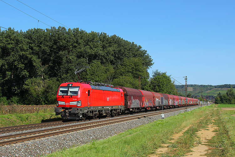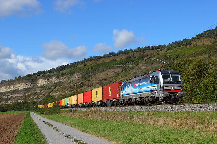 193 034 war mit einem Stahlzug in Richtung Würzburg unterwegs. |