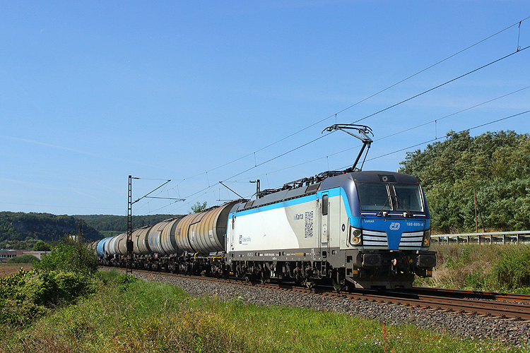 CD Cargo 193 695 fuhr mit einem Kesselzug in Richtung Würzburg. |