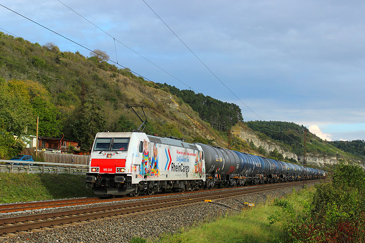 RHC 185 349 fuhr mit einem Kesselzug in Richtung Gemünden. |