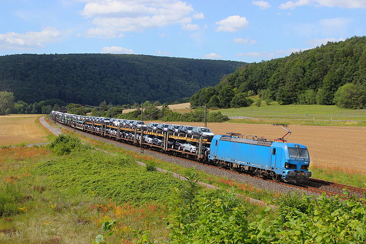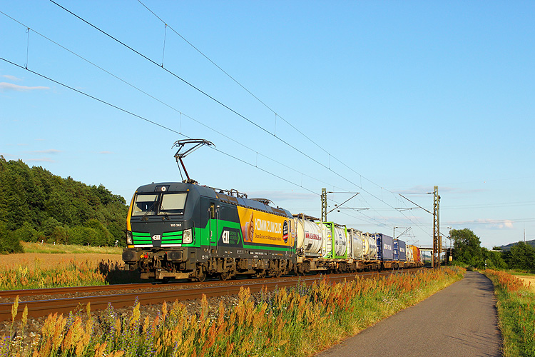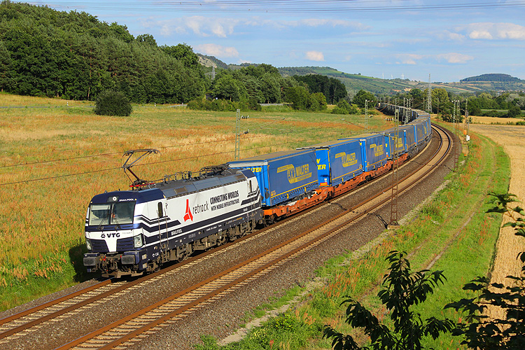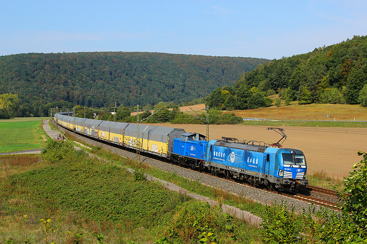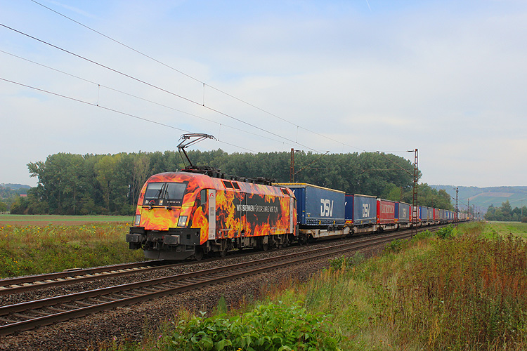 Am Mittwoch, 16.09.2020, sollte es wieder heimwärts gehen. Zunächst mußte ich aber ein letztes Mal in diesem Jahr zum Nußbaum bei Retzbach-Zellingen. ECCO 193 202 brachte den Ekol-KLV DGS 43987 von Köln nach Triest. |