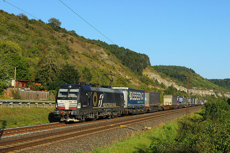 Mercitalia 193 705 fuhr mit einem KLV in Richtung Gemünden. |