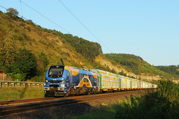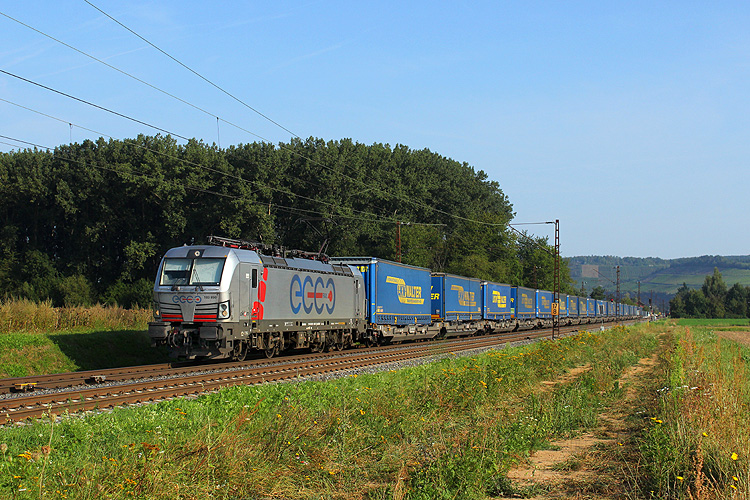 Am Freitagmorgen 30.08.2024 bei Retzbach - Ecco 193 890 mit dem Lkw-Walter-KLV Rotterdam - Wien. |