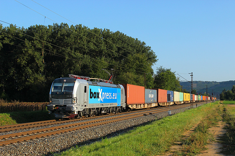 Boxxpress 193 196 fuhr mit einem Containerzug in Richtung Würzburg. |