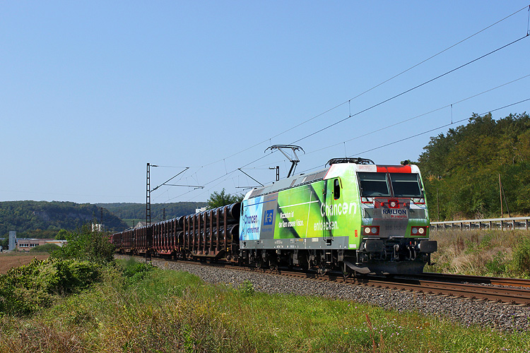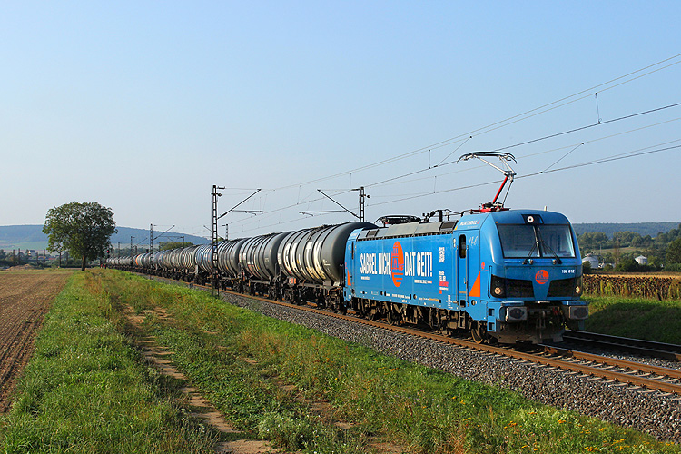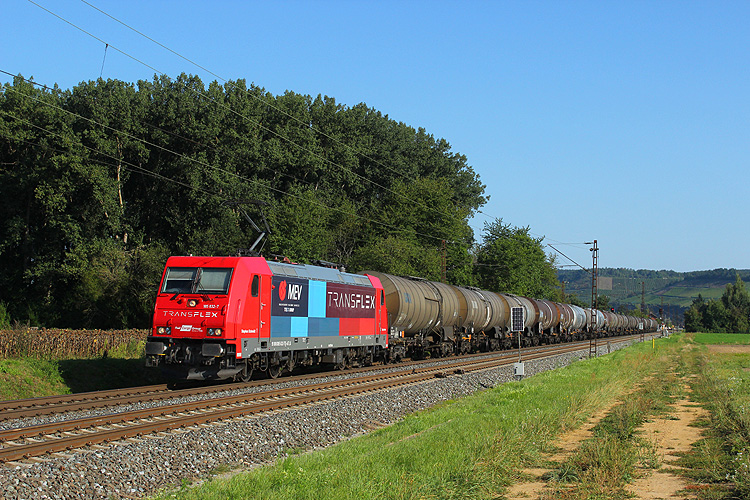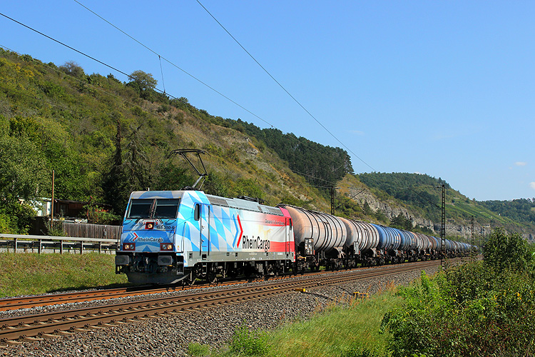 RCL 185 632 war mit einem Kesselzug in Richtung Würzburg unterwegs. |