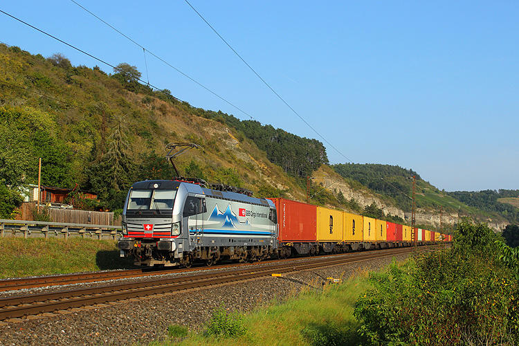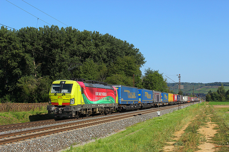 SBB Cargo 193 107 fuhr mit einem Containerzug in Richtung Gemünden. |