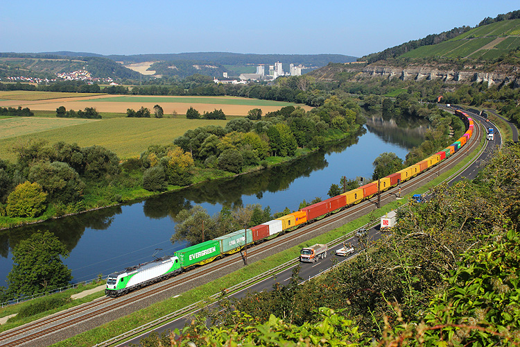 Ecco 193 170 fuhr mit einem KLV in Richtung Würzburg. |