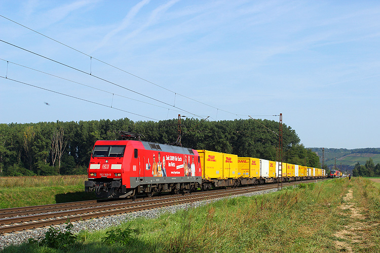 152 169 kam mit dem DHL-Zug Lehrte - Nürnberg. |