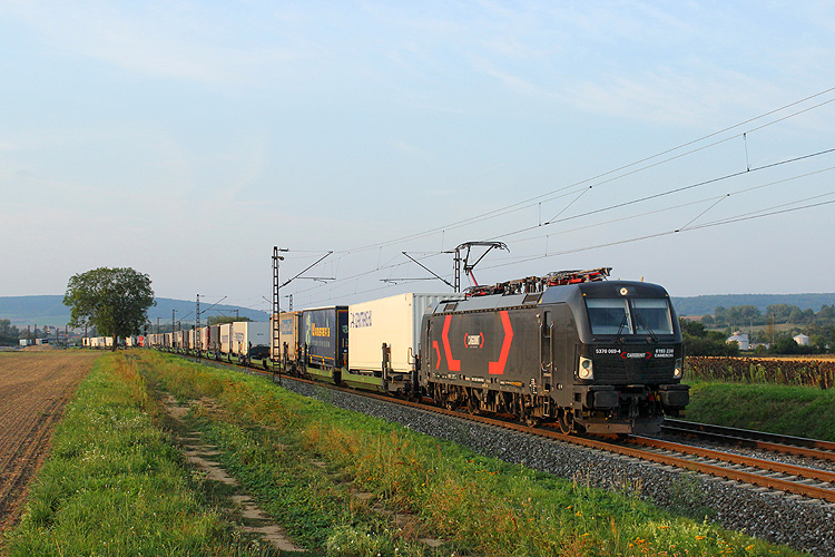 Samstagmorgen 31.08.2024 bei Retzbach - Cargounit 193 238 mit dem Helrom-KLV Wien - Düsseldorf. |