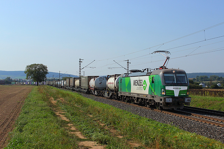 Am Donnerstagmorgen 29.08.2024 war bei Retzbach VTG 159 221 mit einem Gaskesselzug in Richtung Würzburg unterwegs. |