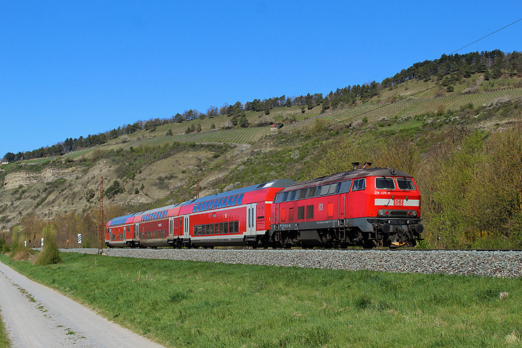 Mittags ging es wieder nach Thüngersheim, wo 218 429 einen Leerzug in Richtung Gemünden schob. |