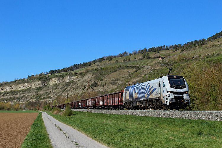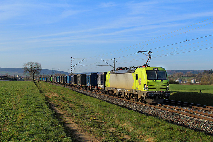 Am Samstagmorgen 12.04.2025 ging es wieder nach Retzbach - LTE 193 967 mit KLV in Richtung Würzburg. |