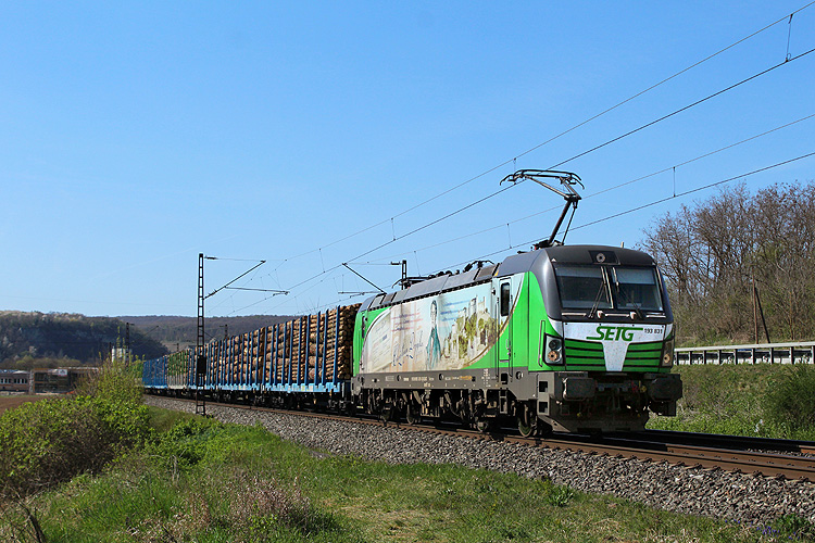 SETG 193 831 fuhr mit einem Holzzug in Richtung Würzburg. |