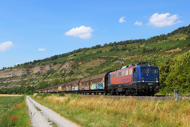 Den Gegenzug DGS 59970 Gunzenhausen - Langenfeld mit Bayernbahn 139 309 nahm ich bei Karlstadt auf. |