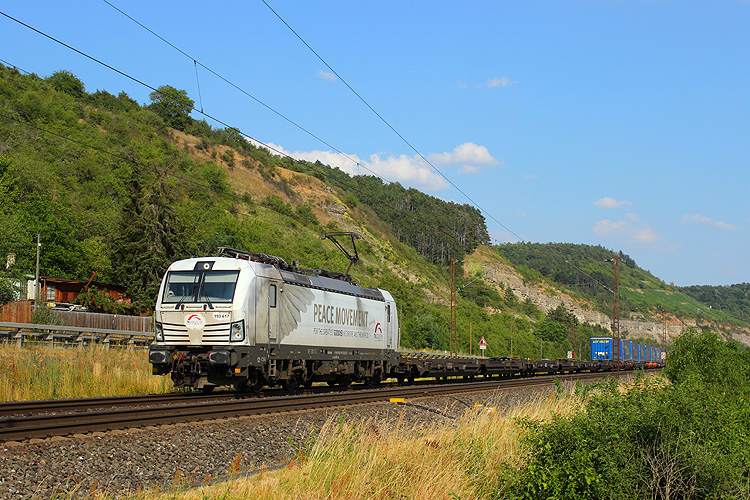 CZ Train 193 725 hatte einen Milsped-Autozug in Richtung Gemünden am Haken. |