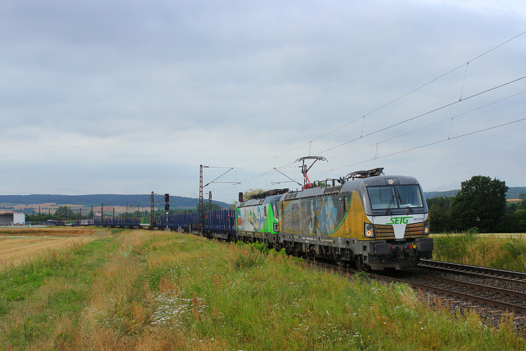 Am nächsten Morgen bei Retzbach - SETG 193 218+736 mit leerem Holzzug in Richtung Gemünden. |