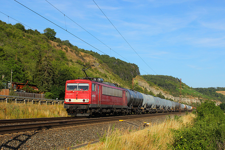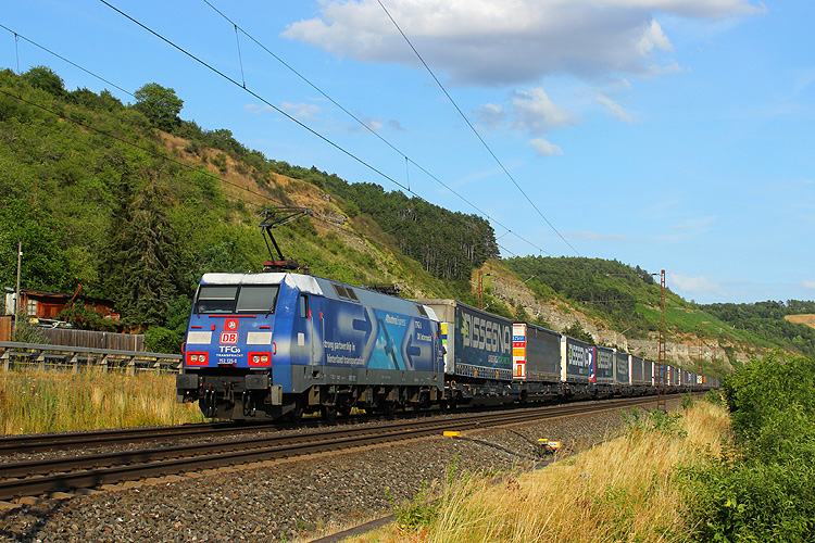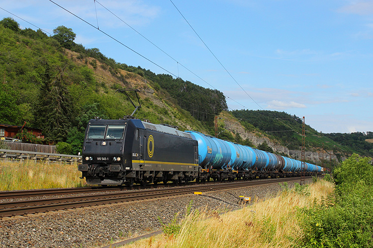 RTI 185 545 rollte mit einem Kesselzug ebenfalls in Richtung Gemünden. |