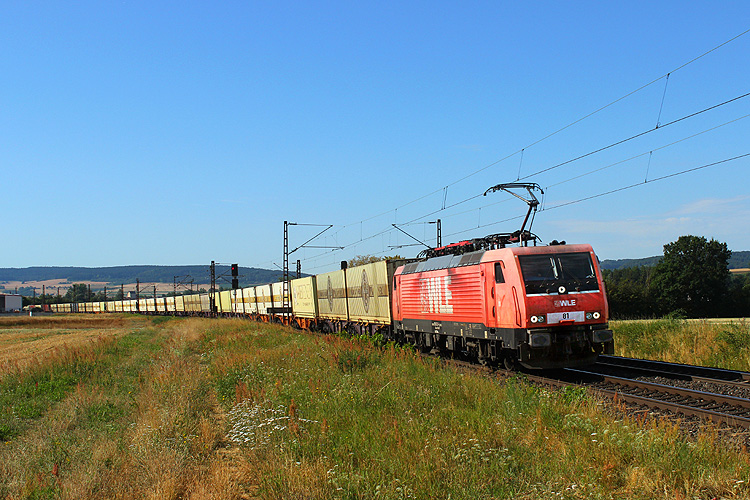WLE 189 801 mit dem leeren Warsteiner-Bierzug DGS 52409 München - Lippstadt war auch spät dran. |