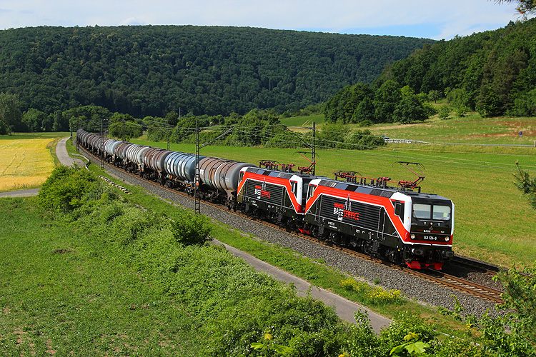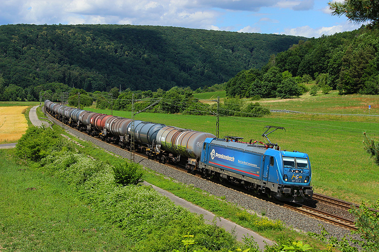 Flex 145 088 fuhr mit einem Kesselzug in Richtung Würzburg. |