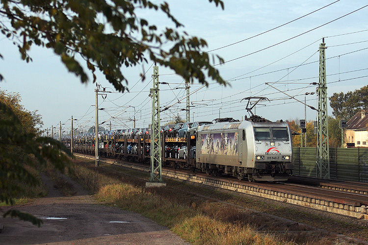 Die Ford - Züge von Köln nach Guben fuhren 2008 erfreulicherweise meist über meine Hausstrecke und das mit ständig wechselnden Lokomotiven. Am 18.10.2008 erwischte ich 185 540 "Kassel Huskies" der TXL bei der Durchfahrt in Gardelegen. |