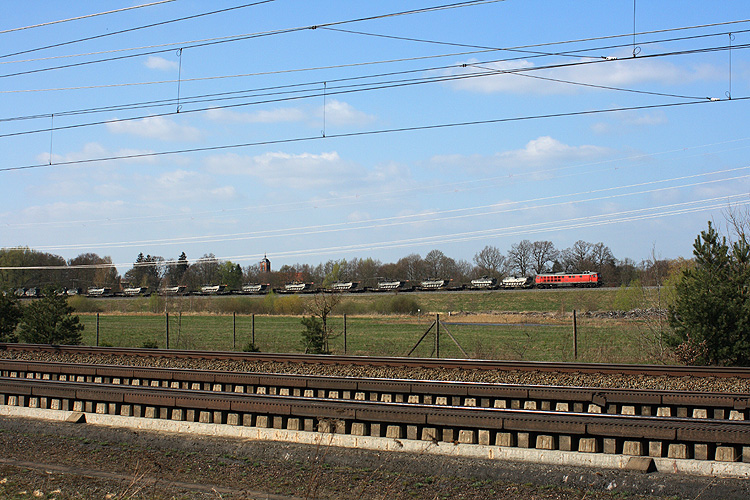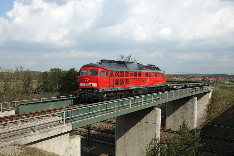 Einen Leerzug brachte am 30.04.2010 232 703 zum GÜZ und überquert hier die Hauptbahn bei Kloster Neuendorf. |