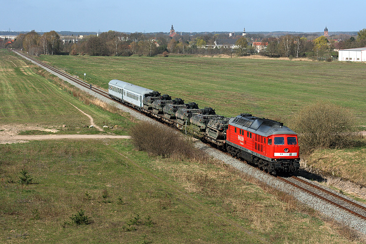 233 233 fährt mit Puma- und Leopard-Panzern nun auf Kloster-Neuendorf zu, 19.03.2023. |
