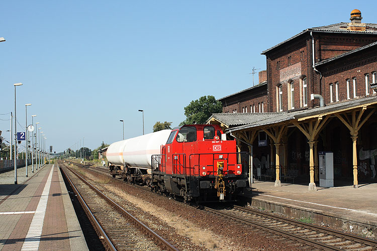 Während des Sachsen-Anhalt-Tages vom 24.-26. Juni 2011 machte sich endlich der Bau des neuen Bahnsteiges 2 wegen der vielen zusätzlichen Regionalbahnen bezahlt. So wartet hier am Bahnsteig 2 642 692 als RB 34973 nach Stendal auf die Abfahrtszeit. Die WFL 20 war hingegen mit einem Sonderzug aus Loburg nach Gardelegen gekommen und wird sogleich die Rückfahrt antreten, 26.06.2011. |