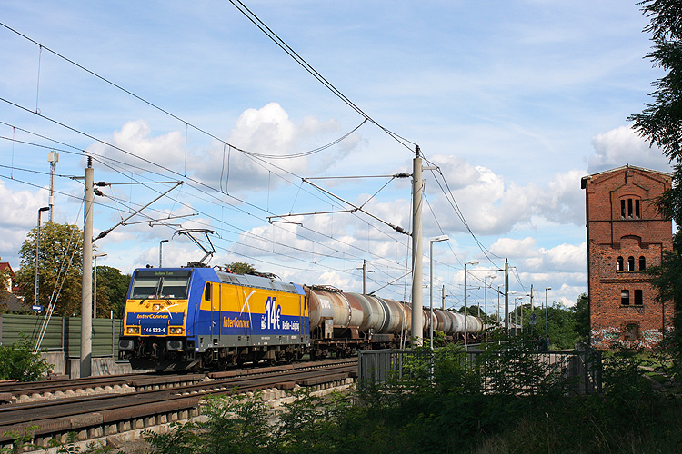 Am 25.05.2008 war wegen Bauarbeiten bei Wustermark ein Abbiegen vom Berliner Außenring auf die Schnellfahrstrecke in Richtung Westen nicht möglich. Der normalerweise mit Ellok bespannte FIR 51614 Seddin - Hagen Vorhalle mußte deshalb mit 232 428 über nicht elektrifizierte Strecken im Berliner Stadtgebiet umgeleitet werden. Da die 232 nicht mit LZB ausgerüstet ist, wurde der Zug über die Stammbahn statt über die am Sonntag stark ausgelastete Schnellfahrstrecke weiter in Richtung Wolfsburg geleitet. |