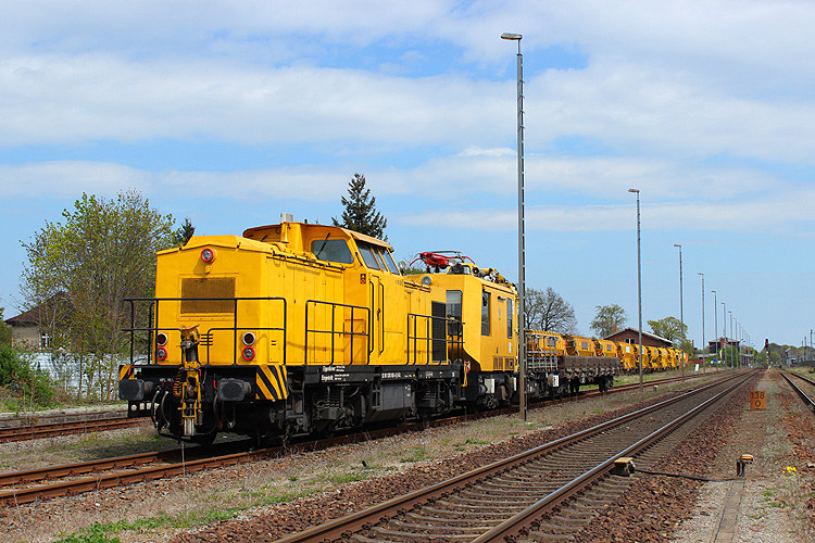 Press 293 026 mit einem Bauzug in Richtung Stendal am 07.08.2009. |