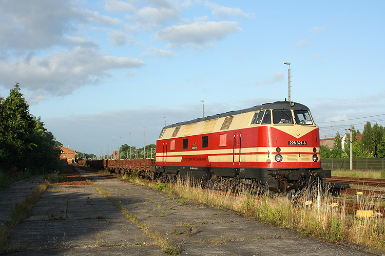 Zwischen zwei anstrengenden Nachtschichten im Bauzugdienst ruhte sich die 228 321 der CLR tagsüber am 29.06.2013 an der Ladestaße des Gardelegener Bahnhofs aus. |