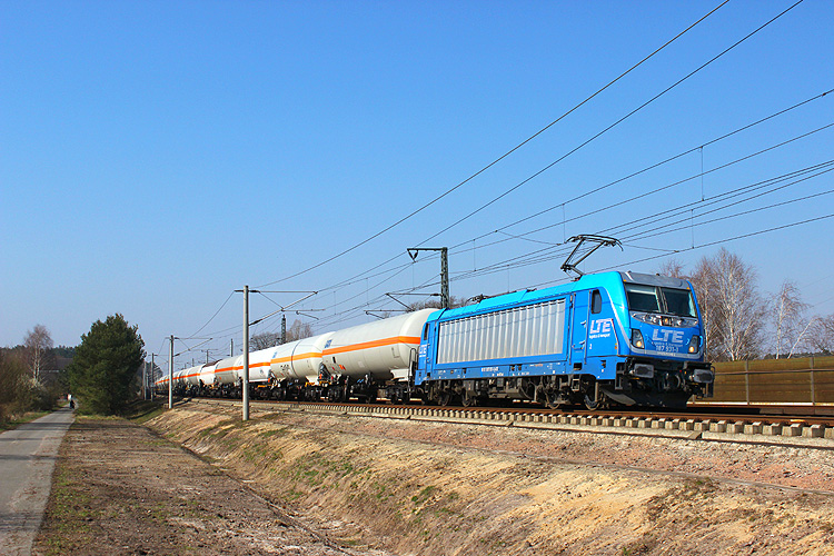 Mit einem Gaskesselzug fuhr am 09.03.2020 187 931 von LTE westwärts. |