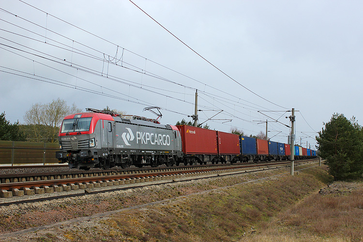 Am 29.03.2020 fuhr PKP-Cargo 193 520 mit einem China-Containerzug von Malaszewice nach Rheinhausen über die HGV. |