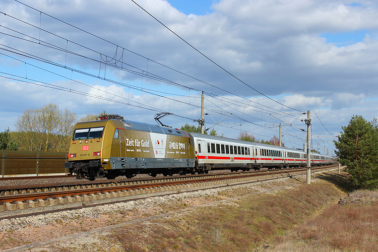 101 071 "Zeit für Gold" kam mit dem IC 142 Berlin - Bad Bentheim. |