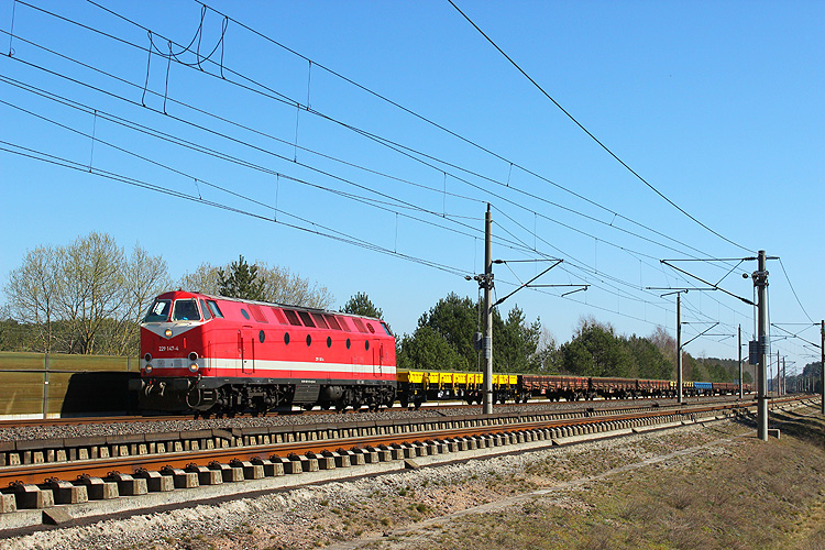 CLR 229 147 brachte an jenem Tag den Flachwagenzug DGV 93439 von Berlin nach Hannover. |