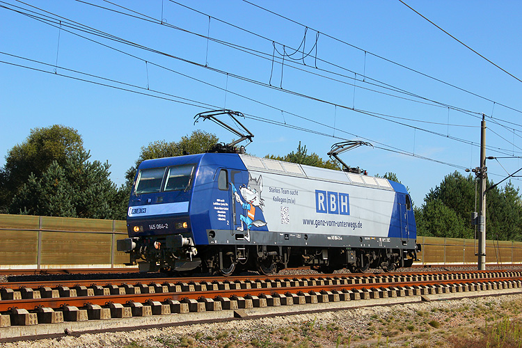 Doppelt aufgebügelt brauste RBH 145 064 solo in Richtung Wolfsburg. |