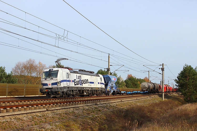 Am 14.11.2020 wurde der Mischer EZ 51070 Seddin - Seelze über die HGV umgeleitet, bespannt mit "I am European" 193 362. |