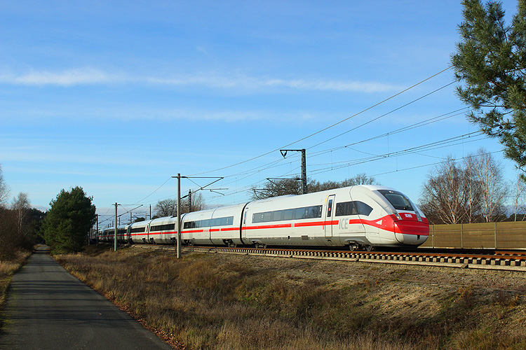 Die neuen 7-teiligen 412 lösen nun die 402 im Ost-West-Verkehr ab. Am 28.12.2020 war der maskierte 412 213 als ICE 555 von Bonn nach Berlin unterwegs. |