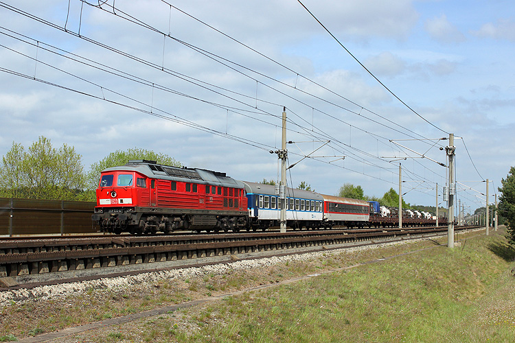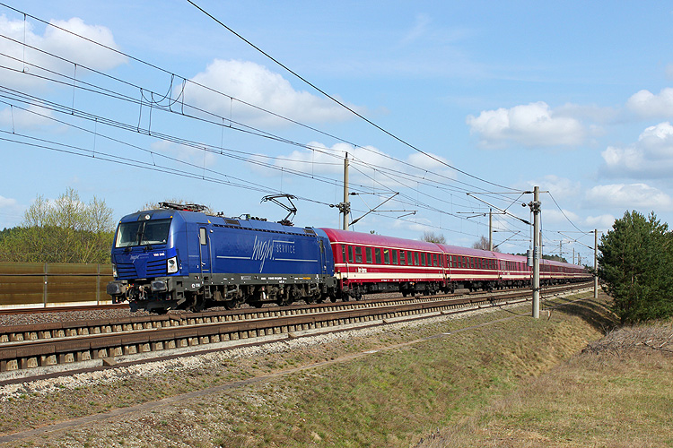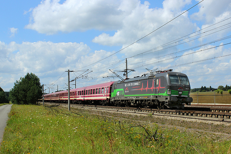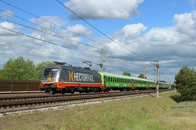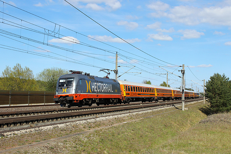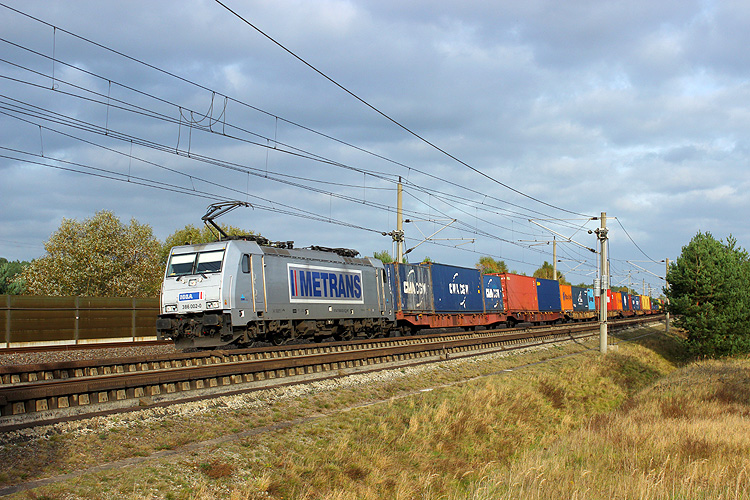 Nur wenn es unbedingt sein muß, fährt auch mal die Metrans über die HGV-Strecke Stendal - Wolfsburg. Am 13.10.2017 gab es zwischen Helmstedt und Braunschweig eine Störung, so das 386 002 mit dem Containerzug DGS 41308 Ceska Trebowa - Bremerhaven den ungeliebten Weg nehmen mußte. |