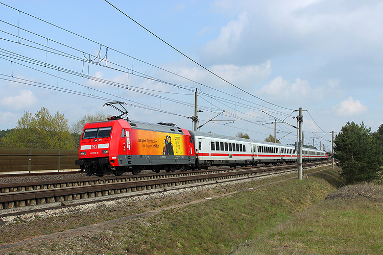 Am Nachmittag des Tages gab es die "500 Jahre Reformation" 101 119 mit dem IC 1997 Berlin - Frankfurt/Main zu sehen. |