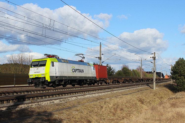 Am 20.03.2018 kam Captrain 152 196 mit einem Containerzug von Großbeeren nach Hamburg über die HGV gefahren. |