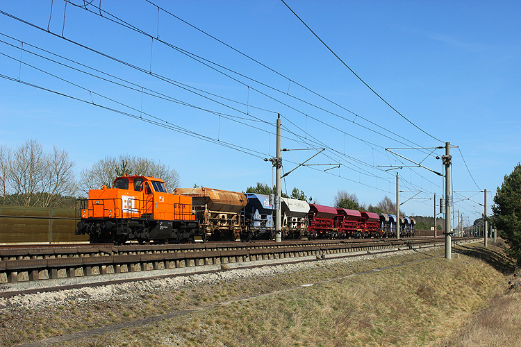 BBL 214 012 fuhr mit einem Schotterzug in Richtung Oebisfelde. |