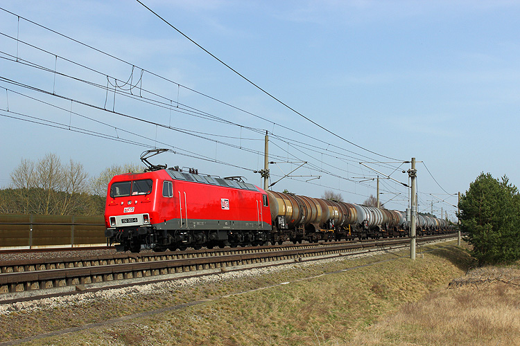 Am 25.03.2018 fuhr Raildox 185 419 mit einem Kesselzug in Richtung Stendal. |