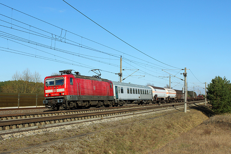 Am Nachmittag des Tages kam dann der DB-Pendant dazu - 143 850 mit dem umgeleiteten Mischer EZ 51071 Seddin - Seelze. |