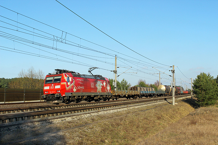 Mit einem weiteren Mischer nach Seelze folgte später noch die Schweiz-Werbelok von DB-Cargo 185 142. |