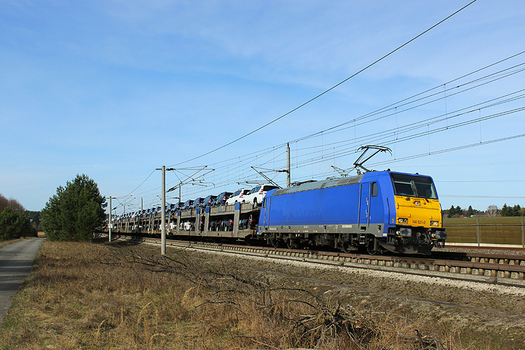 Kurz darauf folgte die nun für HSL fahrende 146 521 mit einem Toyotazug der BLG. |