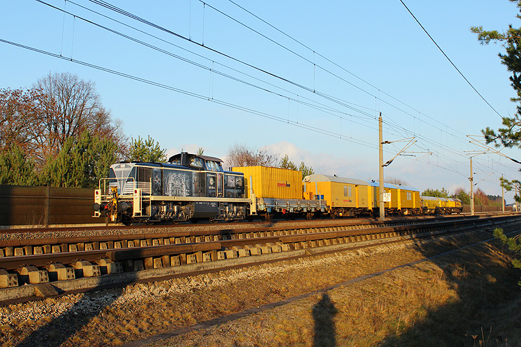 295 076 der RPRS fuhr am 11.02.2016 mit einem Bauzug auf der Stammbahn westwärts. |
