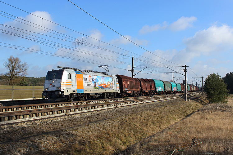 Mit einem Stahlzug fuhr am 25.02.2016 HSL 186 181 westwärts. |